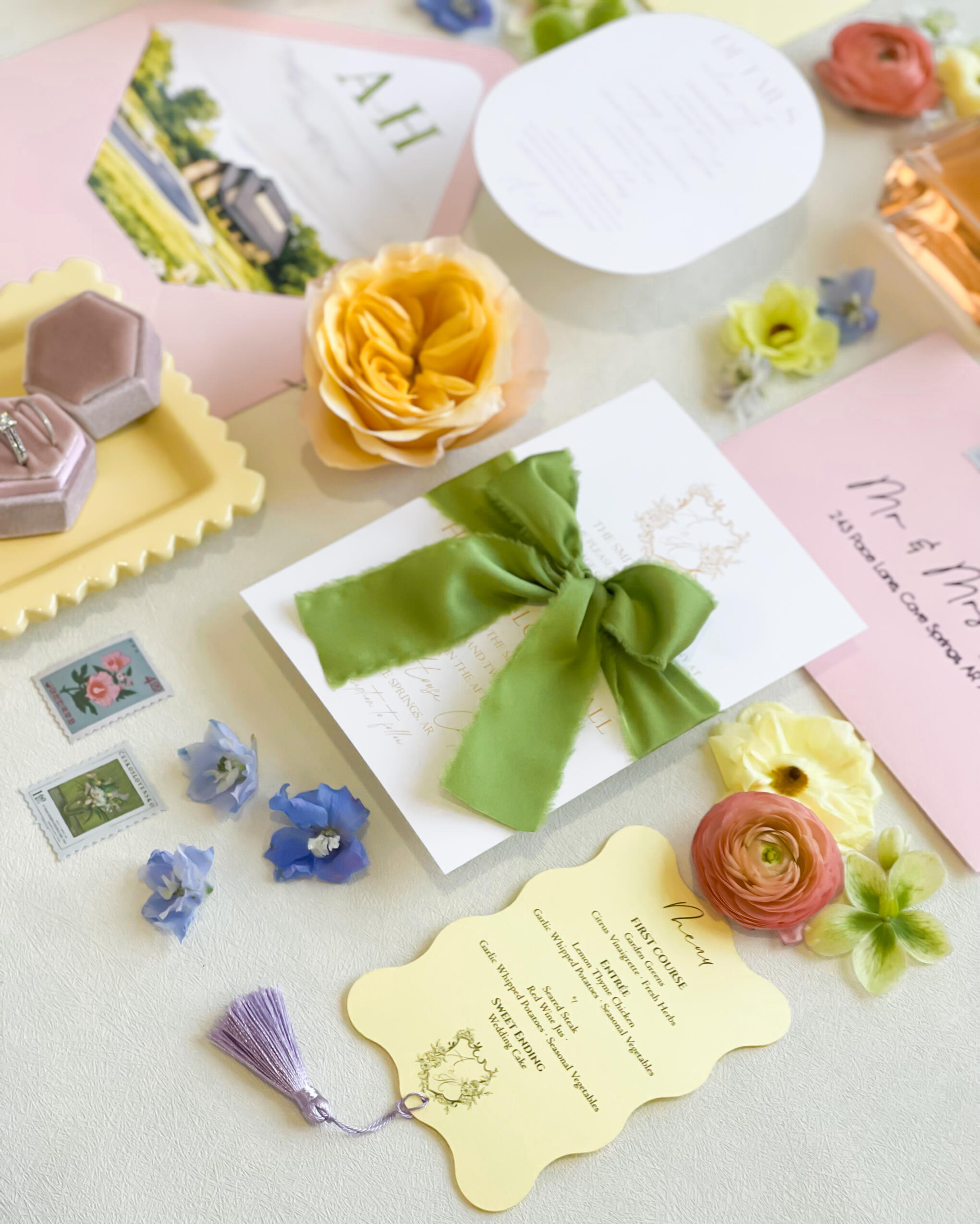From invitation suites to day-of signage and printed details, our work is rooted in generosity -of thought, of design, and of experience- creating a seamless and elevated beginning to your celebration.